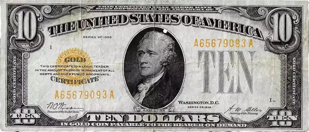 As a result, that $10 bill above will now buy $10 of goods (ignoring its collectability), but the $10 gold piece contains .4838 troy ounces of gold, which today is worth $2035 (mid October 2025). These used to be equal in value. Since the beginning of the 20th Century gold has retained its purchasing power, while the value of paper currency has been wrecked.